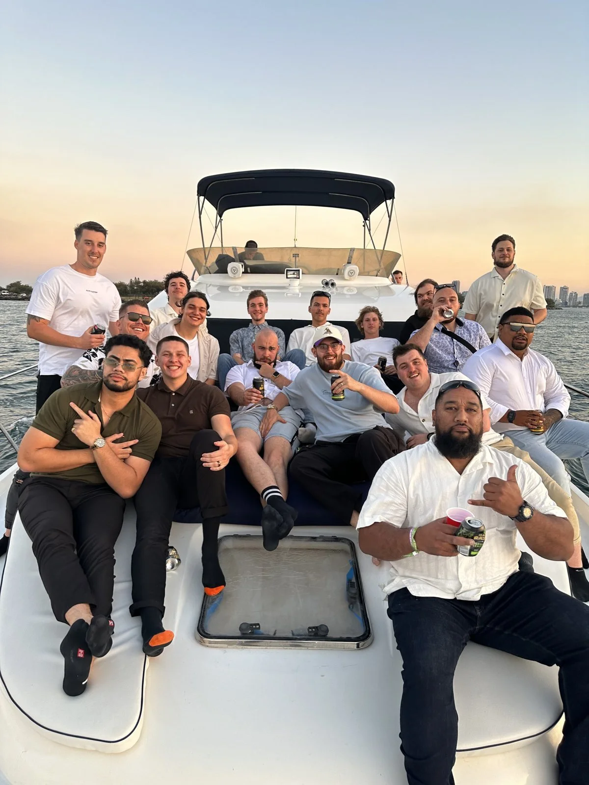 Private sunset yacht cruises for up to 25 guests. Glide along the Broadwater as the skyline glows — perfect for proposals, anniversaries, birthdays and golden‑hour catch‑ups. BYO or choose from our catered packages. Sunset charters from $650 per hour (2–4 hr options).